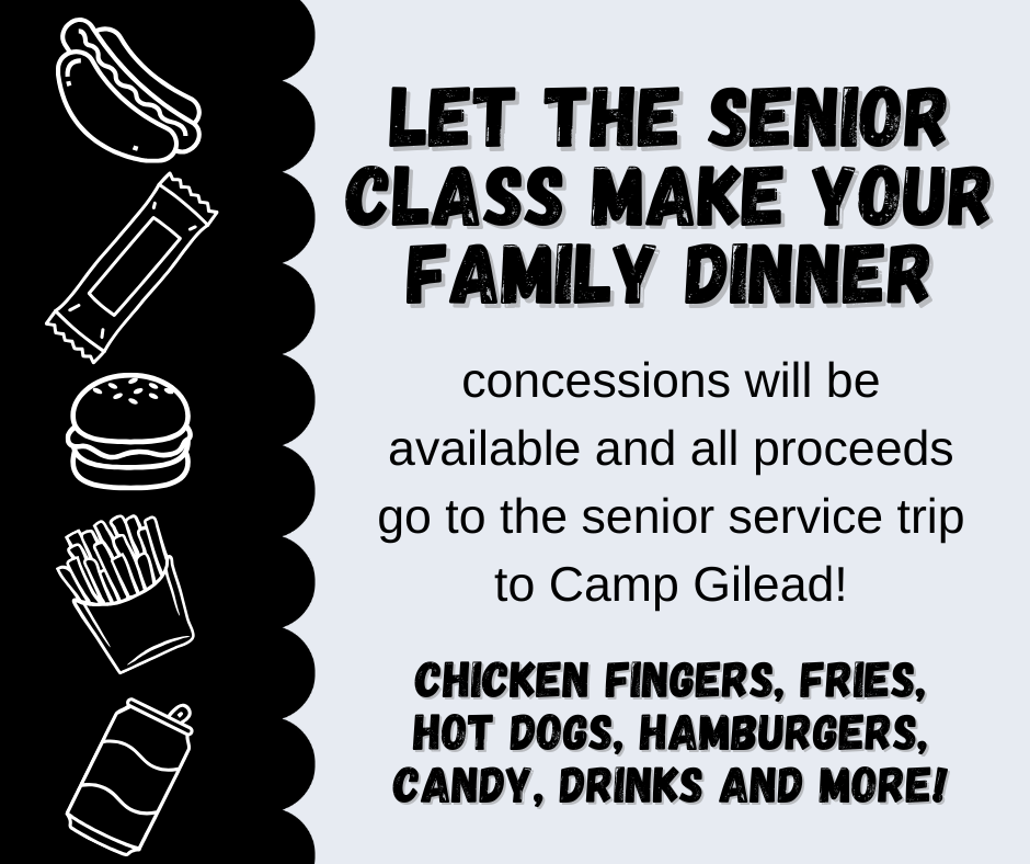 Food will be available for purchase to support the Senior Class.