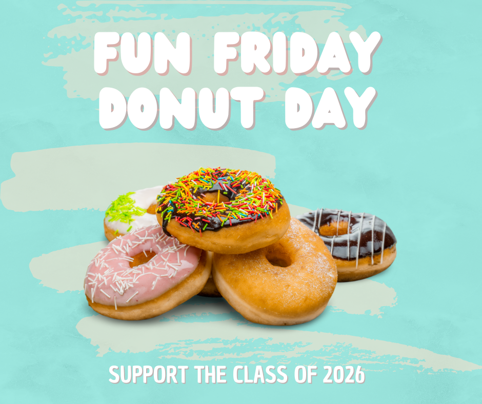 Donut Day is coming on Friday, September 19 Support the Class of 2026 by purchasing a delicious donut for only $2.00. Orders due on Tuesday, September 16.